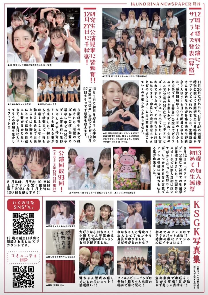 13歳という若さで、チームHへの昇格という大きな一歩を踏み出す生野莉奈ちゃん。 「チームHに入ってもこの経験を活かしてファイト!!」というファンの皆さんの熱い想いを胸に、2024年も彼女らしく突き進んでほしいですね。